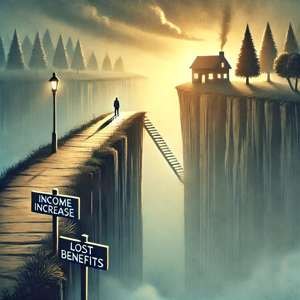 Imagine you receive rent support because your income is just below the official limit. Then your employer gives you a modest raise—a good thing, in theory. But suddenly, you no longer qualify for rent assistance. The extra income is quickly swallowed by higher rent, or by losing other forms of support. You end up with less net income than before the raise.